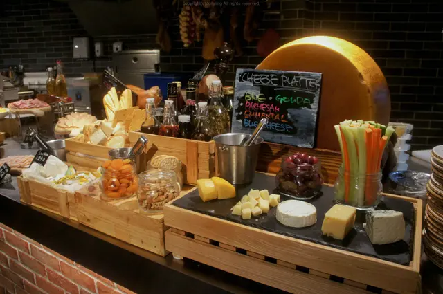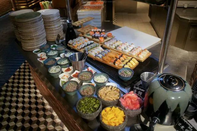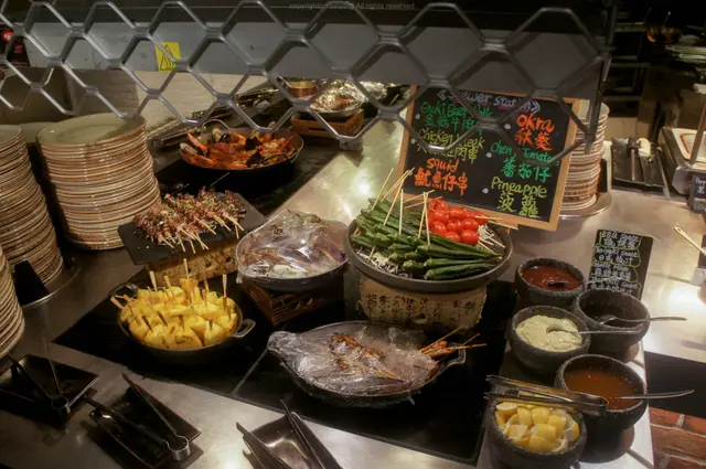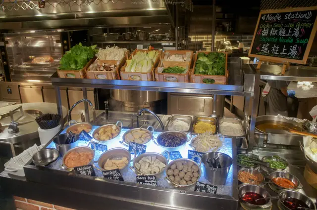 放置食物的位置分散在餐廳不同的角落,但同類型的會集中在一起