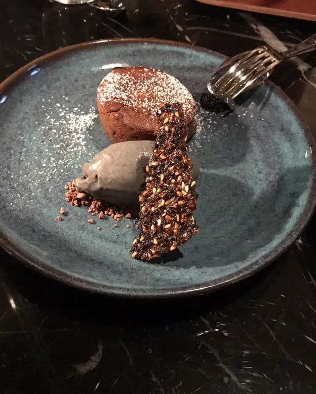 Chocolate pudding 心太軟 值得一提配芝麻雪樣同芝麻薄脆 芝麻味與心太軟意外合拍 既食到朱古力濃郁 又食到芝麻香。