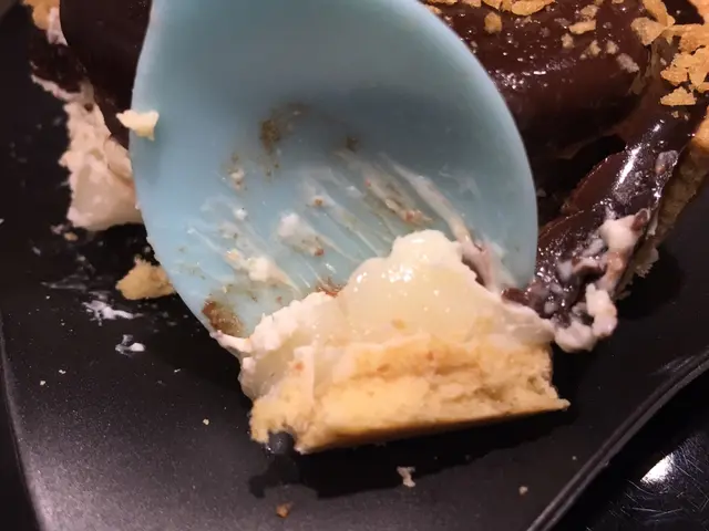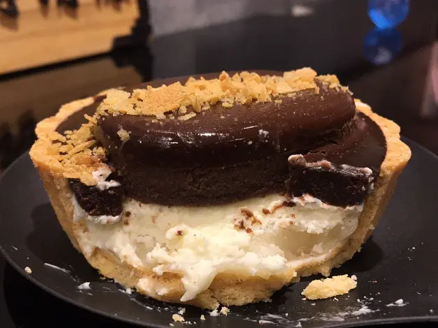 另一款揀了名字充滿本地口味的阿華田吉士麻糬撻($28)。睇外表以為只是一個普通朱古力撻,但原來餡料非常「本土」。底層是半透明兼帶著黏稠膠質的麻薯凝膠,似乎想平衡焗撻餡料的甜膩、變得健康一點,但淡而無味,而且食得甜點焗撻,就已經豁出去,還擔心甚麼糖分過高?中層是鮮奶忌廉吉士打(custard),味道同樣偏淡,奶香及芝士味唔明顯。重點阿華田吉士打唔覺得有阿華田味,甜度一般、亦唔夠香濃;不過就較檸檬撻的餡料挺身,質感較接近正宗法式靚撻。