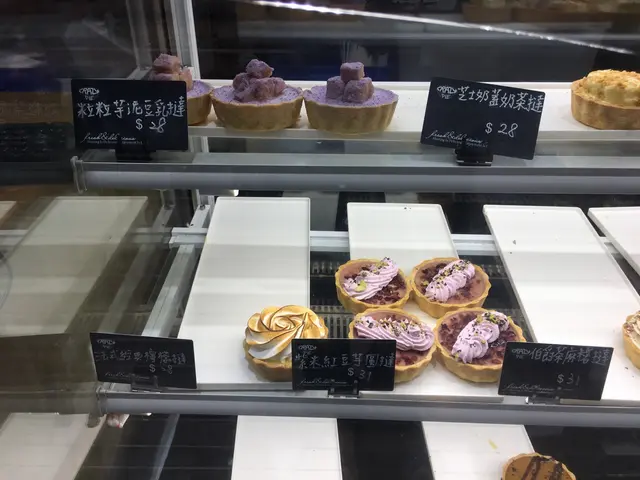總共有10款撻,全部展示在雪櫃內。款式有別於傳統法式高級餅店出品;加入了黃豆粉、粒粒芋泥、紫米紅豆等等香港本地口味食材,到底味道如何呢?