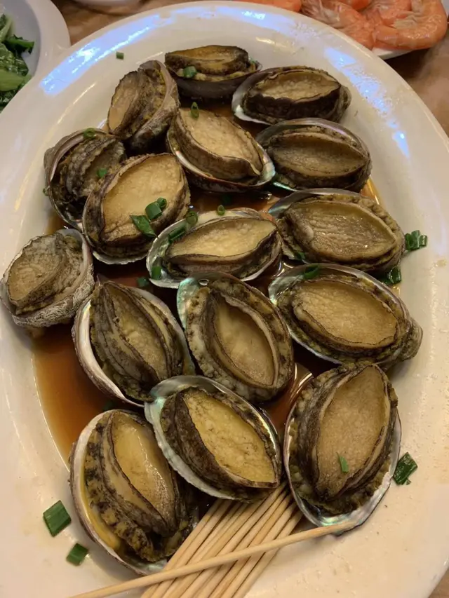 鮑魚,有16隻!!!!!!!我地係冇諗過....雖然唔係話好大隻...但佢8人餐預一人兩隻..好似好多, XD唔理,佢蒸得都岩岩好,幾爽,唔會"UN",唯一係我有少少嫌佢刷口唔夠乾淨,仲有少少偏黑..