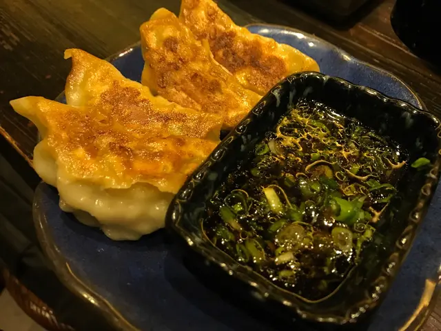 一碟有四夥餃子,火喉控制得好好,餃子煎得呈金黃色,卻沒有油膩感。餃皮一邊煎得乾身脆口;另一邊仍然軟身。餃子的餡料份量不少,咬下去流出肉汁,十分濕潤。