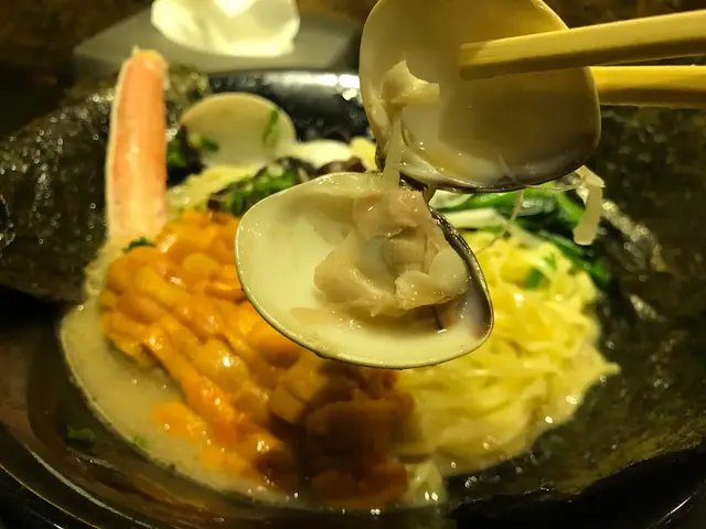 這是店員推介的季節限定。湯底跟海膽拉麵的一樣,都是由蜆熬製而成;相比平常的豚骨湯底,海鮮湯底相對清新鮮甜,每碗都有六七隻鮮蜆,用料十足!松葉蟹腳亦毫不吝嗇,足有四五隻之多!蟹腳味道鮮貼,而且已去一半殼,食客能輕易起肉。