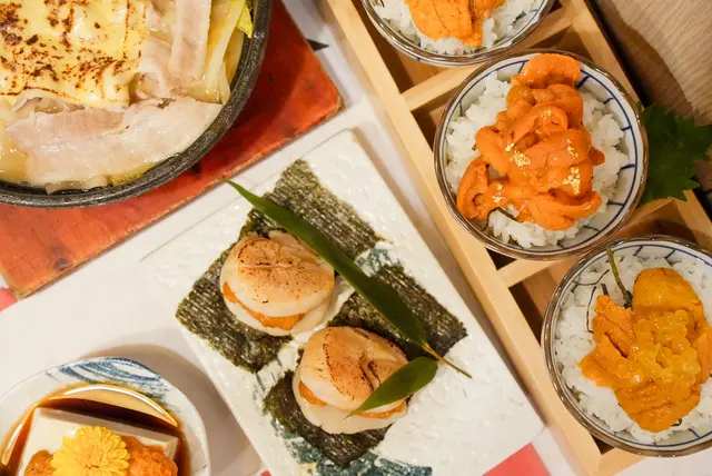 巨型帶子夾著新鮮海膽