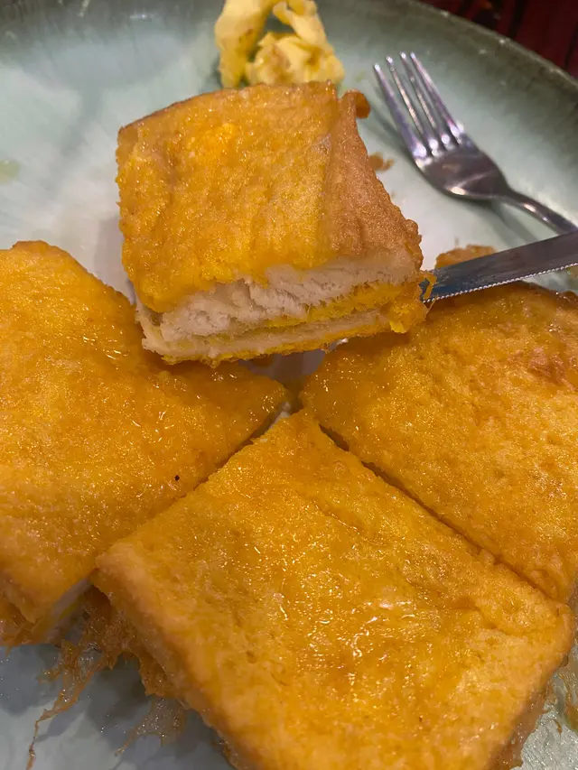 叫左個黃金西多士,menu 上寫有花生醬餡