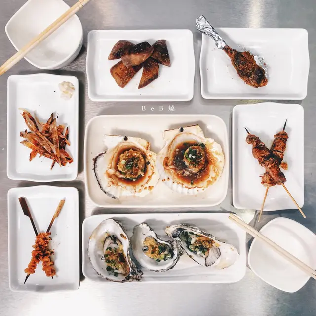 嘢食款式同出面其他串燒舖差唔多,不過勝在款式多,紅肉海鮮蔬菜樣樣齊,叫咗八樣嘢,紅肉類有安格斯牛柳粒、厚切牛脷扒同豬仔髀,肉質唔算好嫩滑但勝在燒得夠惹味,而且調味都幾有辣勁。