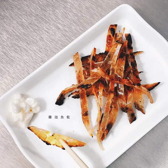 而最正係海鮮類,叫咗生蠔同扇貝,同樣係用蒜蓉蒸,前者蒸完仲係幾大隻,咬落仲有好多汁,而扇貝都係好大隻,啖啖肉又索哂啲汁,肉嫩蒸得剛剛好。最後係佐酒小食,雞皮串夠脆口惹味,雞泡魚乾好𡁻口,送酒一流。