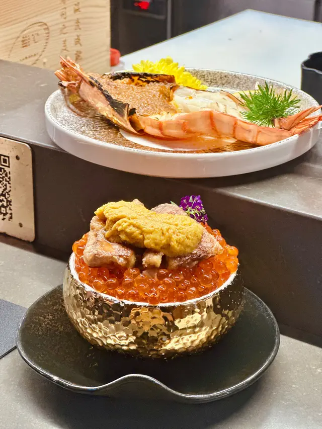 鮮甜嘅海膽配以油香濃郁鵝肝同三文魚籽