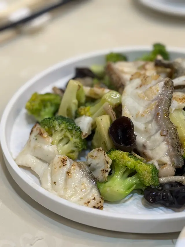西蘭花色澤翠綠,保持脆口感,加入雲耳、百合,斑塊炒至剛好熟透,是一道十分健康的菜式。