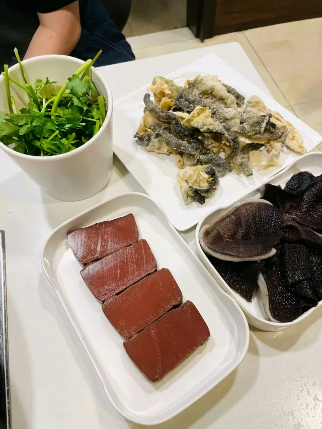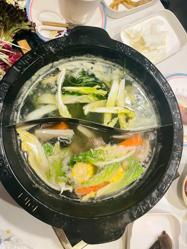 有5款湯底可選,我們點了粟米豬軟骨鍋+皮蛋芫茜🌿鍋 ~芫茜迷必點,還能另外加🌿,可以大大滿足你的🌿願望,至於配料方面,就選了蔬菜籃,鵝腸,黑毛肚,鴨血~有菜有肉,均衡飲食
