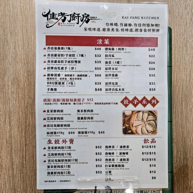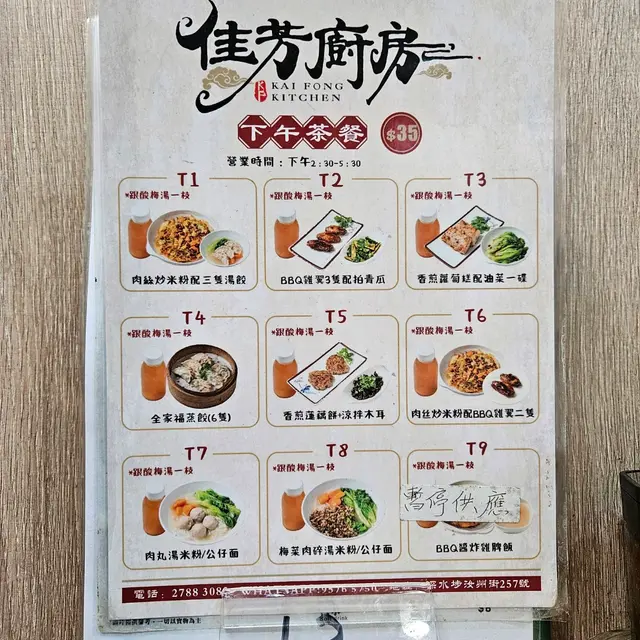 深水埗街坊小店佳芳廚房 Carrie-1204等级42024-10-20409 浏览 关注 同朋友去深水埗睇電子影音產品,行行吓已經兩點半,繼續週圍行順便搵嘢食,行到汝州街見到一間叫佳芳廚房個名幾特別,招牌設計又靚就吸引入去,唔係一般茶餐廳,啲食物看似普通又有啲特別,下午茶餐有八種可供選擇。肉絲炒米粉配三隻湯餃,炒米粉好多配料,有肉絲、生菜、花生,炒得幾香味道唔錯。湯餃個湯底都幾濃郁跟生菜,餃子好滑溜,肉餡豐富有質感。全家福蒸餃,有韭菜鮮肉餃、粟米鮮肉餃、芫茜鮮肉餃、蓮藕鮮肉餃、雲耳馬蹄鮮肉餃、太子參椰菜雲耳鮮肉餃,我覺得呢個最正,一次可以食到6種口味嘅蒸餃,美味又滿足。鹽焗雞(例牌),朋友指定要雞胸,我都以為會好鞋口,又唔會喎,連雞胸都好軟熟,店長話係湛江雞所以雞味濃。香煎蘿蔔糕,煎香咗,蘿蔔一條條真材實料,蘿蔔糕都係自家製,食物實而不華,價錢實惠。111以上食记乃用户个人意见 , 并不代表OpenRice之观点。赞好分享深水埗街坊小店佳芳廚房 佳芳廚房 https://s.openrice.com/QrLT0CuLN00检举 张贴 评分4味道4环境5服务4卫生5抵食用餐途径堂食用餐时段下午茶