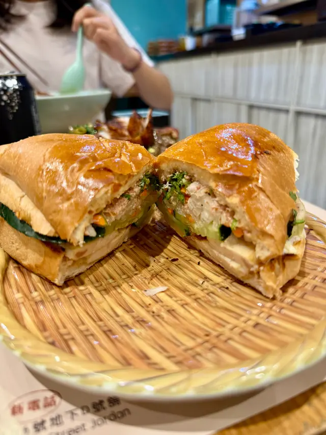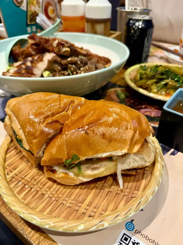 另一個主角係越式傳統鵝肝醬手切扎肉包,個法包外脆內軟,入面夾住扎肉同香濃鵝肝醬,食落又香又滑,幾特別。再加一碟「西貢馬拉盞炒通菜」,火喉夠,通菜爽脆帶蝦醬香。