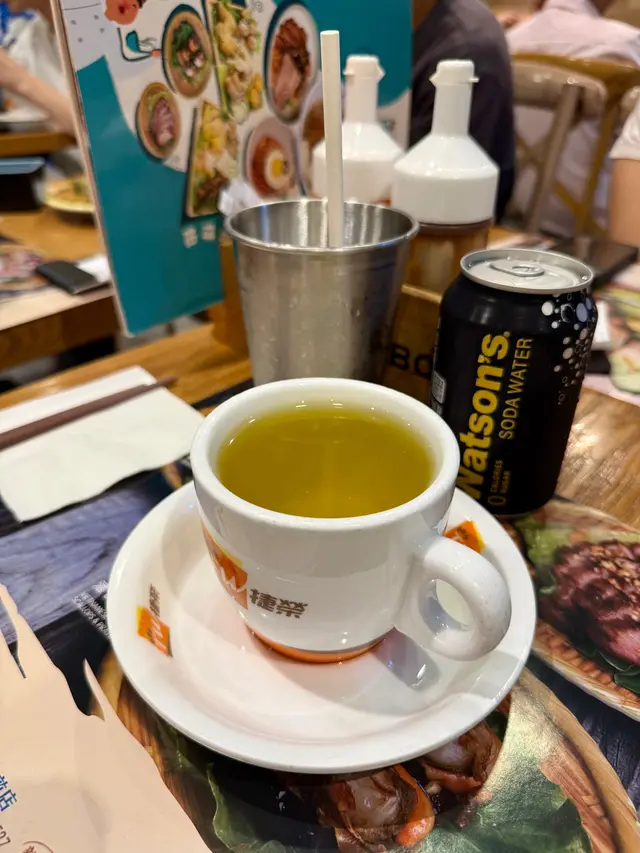 飲品方面,我叫咗梳打水,配埋啲比較濃味嘅餸菜啱啱好。跟餐送熱菜蜜,甜度啱啱好,幾暖胃。