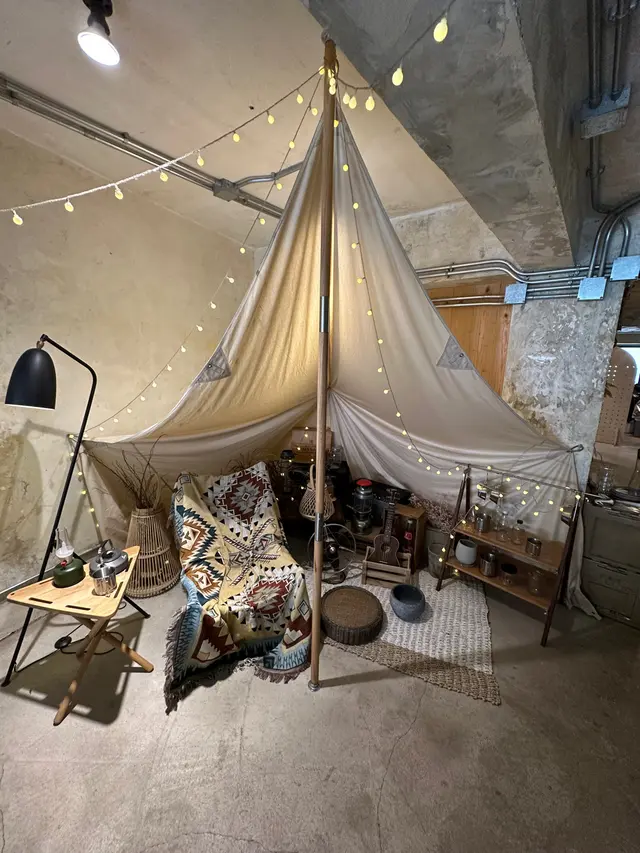 迎面而黎係一個佈置得好靚嘅camp⛺️,有一張好chill 嘅露營櫈,隔離有各式各樣嘅露營用品,總有一支小結他,坐起度chill同影相打卡,成件事好正同好靚!