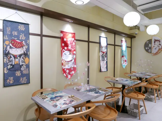 牆上掛著很多趣緻的貓貓掛布,使整體空間充滿溫馨舒適的氛圍。