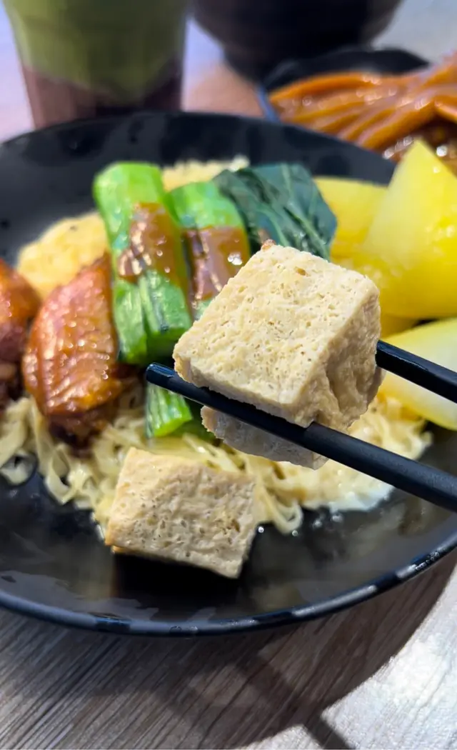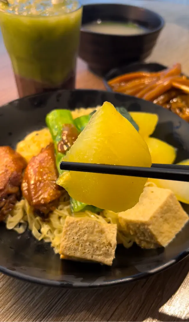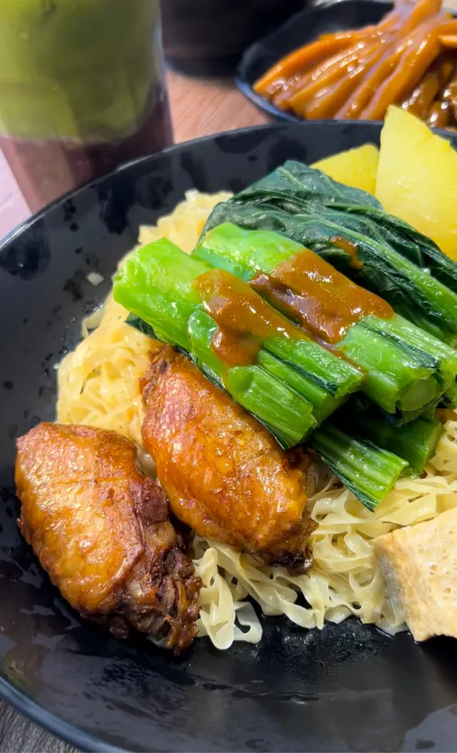 今次我就試咗佢哋嘅🧄蒜油乾撈🍜車仔麵, 個蒜油好香同粗嘅油麵好鬼夾😍,仲有我最鍾意嘅蘿蔔❤️,炸豆腐同🐤🍗雞翼
