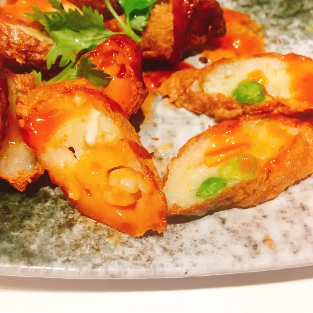 內裏還有真蝦肉和青豆,最讚得是那一層薄薄的外皮,炸得很香脆,沒有一點油膩感。