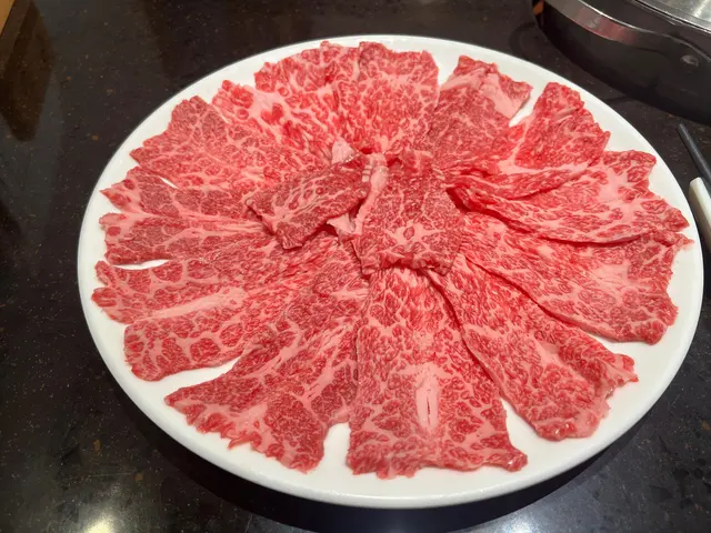 ◦ 雪花牛肉纹理好,涮3秒配沙嗲酱,肉香浓。
