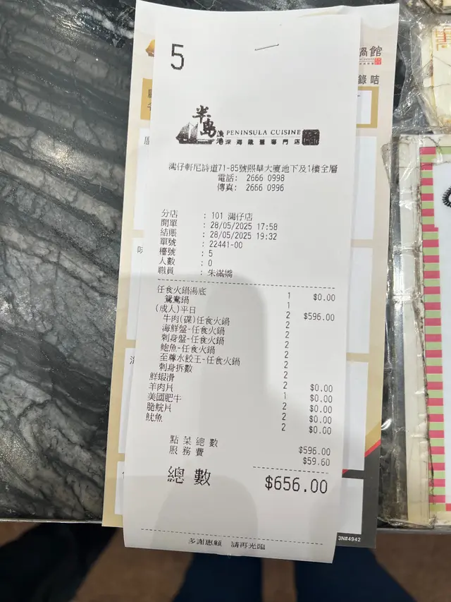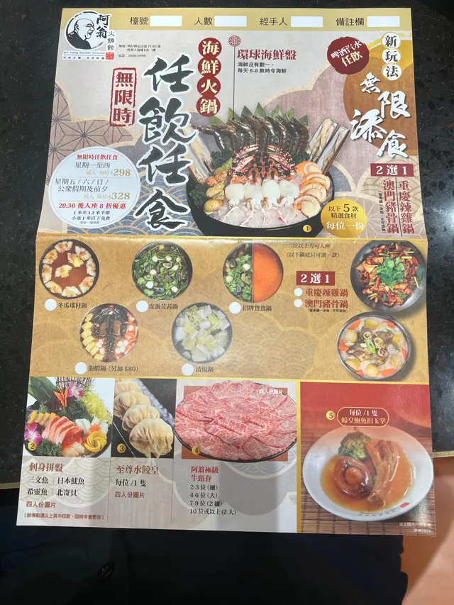 这家店海鲜确实新鲜,肉也不错,火锅任食300港币一位比较值。服务挺好,地方方便,适合朋友一起聚餐吃海鲜火锅。味道和体验都不错,会考虑再去。
