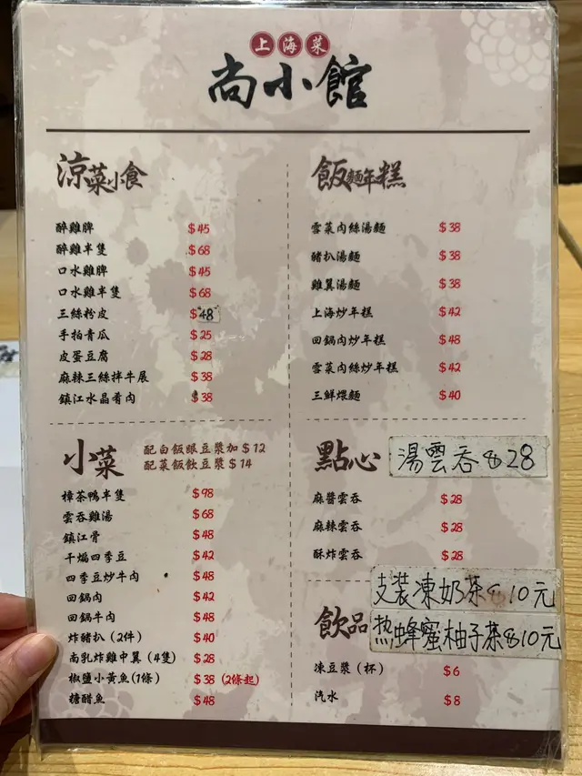 🐟🐥🥟 溫馨家庭式上海菜 kiushun等级42020-10-31210 浏览 关注 -🔸湯雲吞 $28🔸醉雞髀 $45🔸椒鹽小黃魚 $45🔸豆漿 $6-呢間位於長沙灣嘅上海菜館,屬家庭式經營,店員姨姨好nice咁推介菜式,感覺好溫暖。除咗上海麵、菜飯之外,仲有多人款上海小菜同小食,選擇豐富喎~湯雲吞皮唔會好厚,餡料係新鮮芥蘭同肉,湯頭幾清甜。醉雞髀一上枱就聞到好香紹興酒味,食落入晒味,肉質又嫩滑。聽店員姨姨介紹再試埋個椒鹽小黃魚,比想像中大條得多,而且即叫即炸超香脆,連軟骨都食得,性價比超值!以上食记乃用户个人意见 , 并不代表OpenRice之观点。1分享🐟🐥🥟 溫馨家庭式上海菜 尚小館 https://s.openrice.com/QrLT05y0T00检举 张贴 评分5味道4环境5服务4卫生4抵食用餐途径堂食