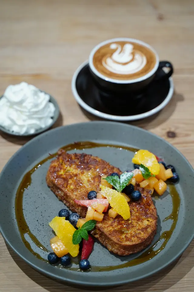 金黃的多士上有色彩繽紛的雜果,非常吸引。多士外脆內軟,配上開胃雜果,糖漿和奶油,味道豐富。