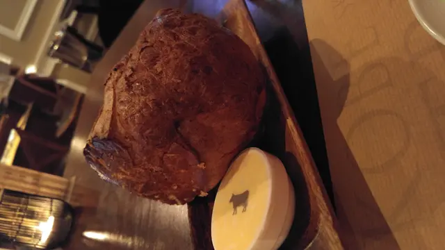 一攞起個Menu,樣樣都只係得英文,都心知不妙,不過 main course 叫 Steak 應該無走雞喇~ 就叫一份肉眼排,5 成熟喇唔該,叫完之後,佢原來話 Steak 係無跟任何野o既,即係我地再要叫 side dishes 喇,咁我地再點左一個芝士蜆殼粉。見到隔離枱食緊盤生蠔
