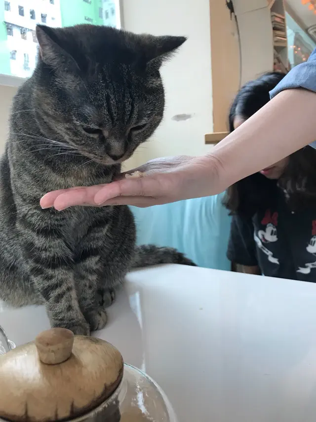 如果屋企有小朋友,唔方便養小動物,可以考慮下帶佢地黎呢到玩下。一黎可以滿足小朋友既好奇,二黎又可以教下佢地點同動物玩同愛護佢地。今日同姪仔姪女係呢到放空左一個小時,佢地都地都好enjoy。每小時HKD65/head,包一杯飲品。呢到仲有一個買猫糧餵猫環節。猫糧每隔一小時出售一次(14:30 / 15:30 / 16:30 etc.)。數量有限,人多要出去排隊買。上黎呢到最好著襪,因為要除鞋入場,另地下好多猫毛。如果有敏感就唔建議你上黎。個場可以比你周圍走去玩猫,姪仔姪女就周圍走,我就坐定定等猫行過黎比我玩😌 有隻貓坐左係我張枱到,都好長時間下,我唯有幫佢影下寫真啦😂😂😂