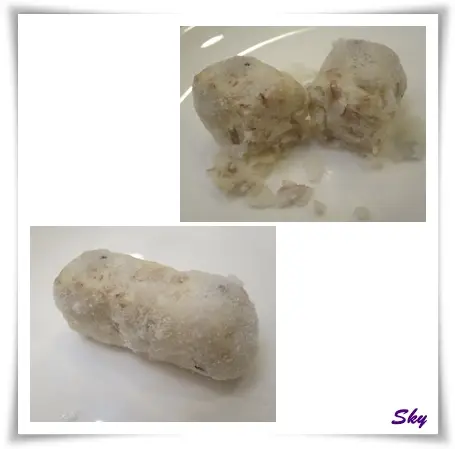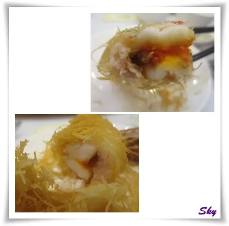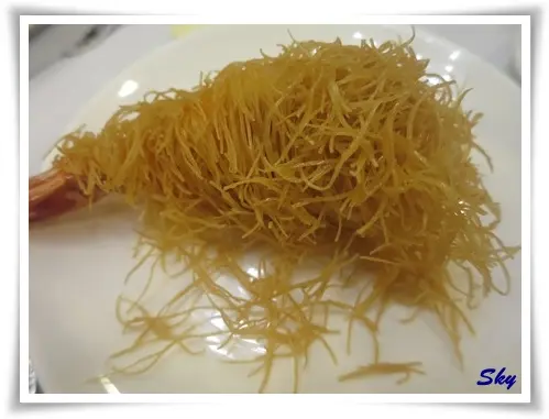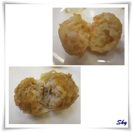 原來是以蝦膠釀在蝦上, 蝦膠以蝦籽切粒與蝦茸各一半, 加上肥豬肉整出來, 再用麵包絲卷上蝦身, 之後再炸.