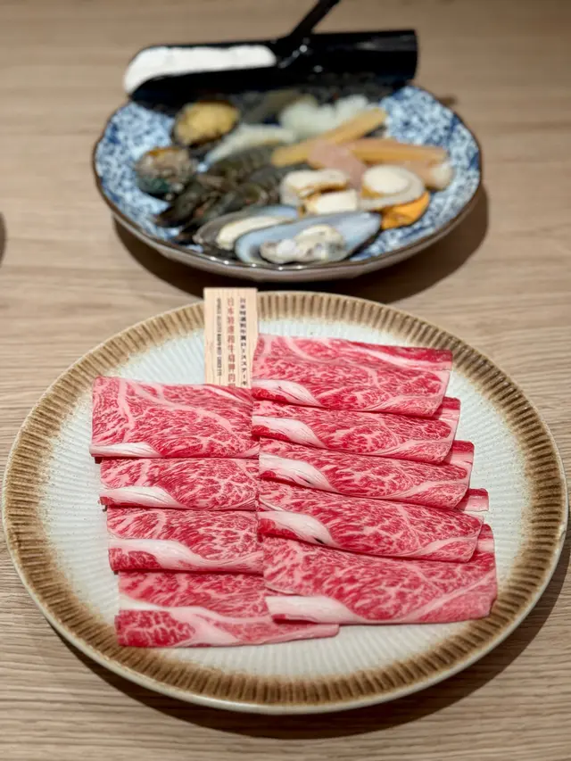 🥩 日本特選和牛肩胛肉油花分布均勻,輕輕一淥就食得,肉質嫩滑帶嚼勁,牛味濃郁!