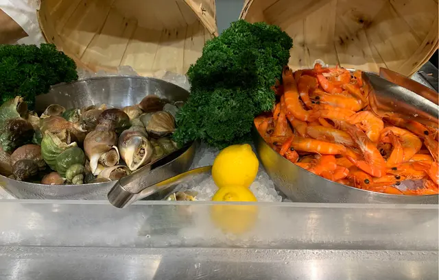 甜品區,當日我主攻冷盤,有凍蝦、長腳蟹、青口、麵包蟹同埋螺,賣相唔差,長腳蟹好味,