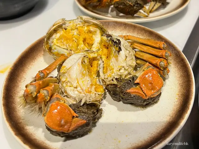 🦀大閘蟹有幾款口味可以選擇:麻辣口味、玫瑰露花雕大閘蟹、秘製鹽焗口味和清蒸口味~