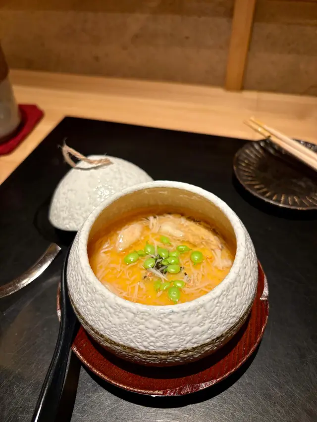 茶碗蒸吃起來嫩滑,濃郁高湯配上蟹肉、黑木耳、青豆等不同食材,味道層次豐富。
