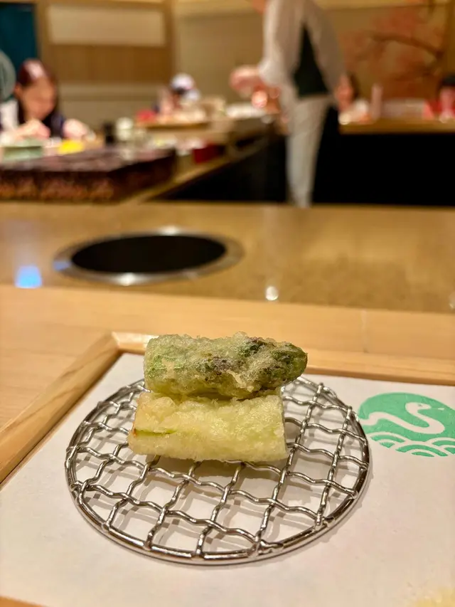 接著是蔬菜,分別是蘆筍和粟米,師傅技術高超,掌握時間恰到好處,能夠炸到外層脆口,內裡仍保存蔬菜的鮮嫩。