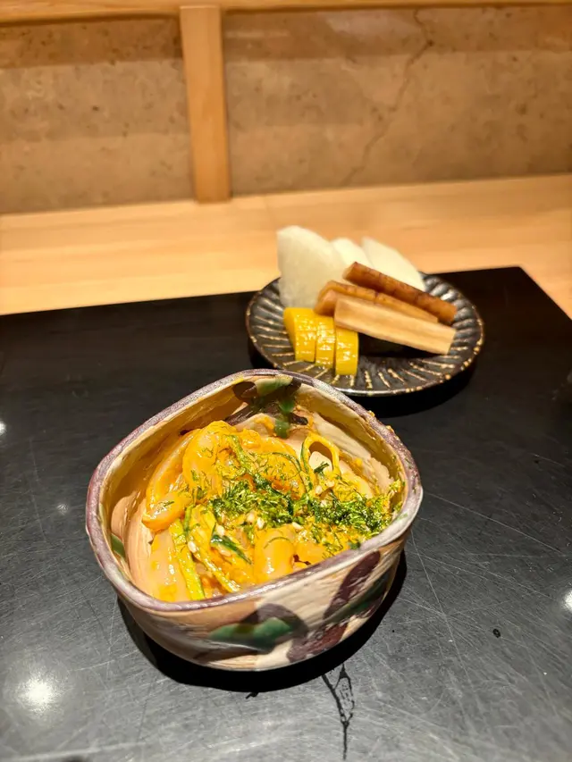 頭盤是海膽魷魚,口感煙韌的魷魚配上鮮味的海膽,味道匹配得來有層次感,令人食欲大增。