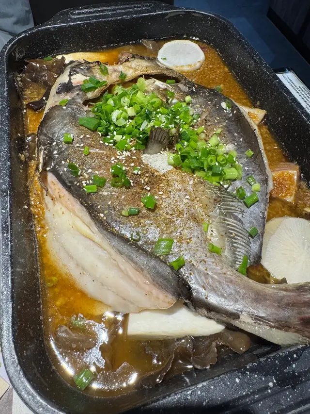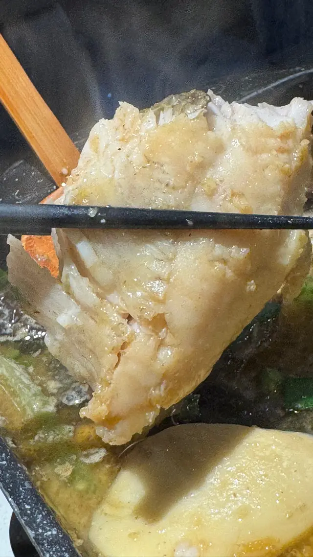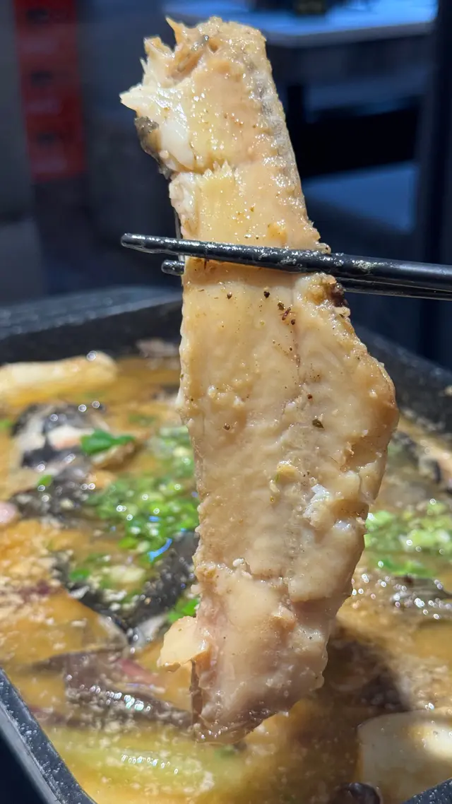 「清江魚」揀咗唔辣嘅「蒜香口味」,上枱嘅時候「清江魚」放咗喺一個四方鍋裏邊,「清江魚」肉厚、多肉、肉質肥美兼嫩滑,有勁多蒜蓉放咗喺湯底裏邊煮,雖然我哋揀咗少鹽少油,但係湯底味道依然十分之濃郁,充滿油香兼且鹹味十足🤣