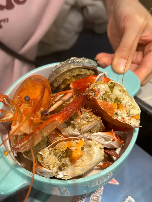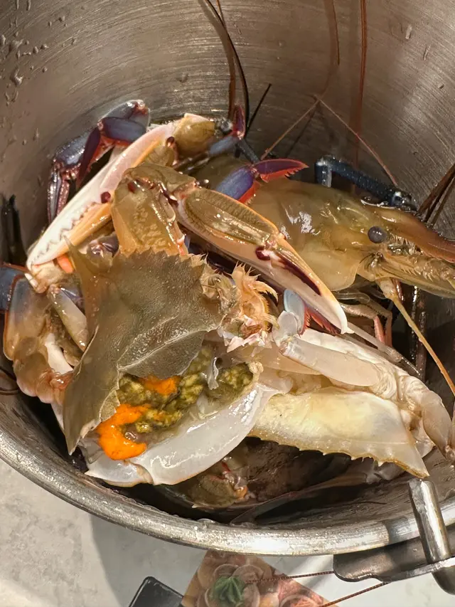 今日終於輪到我BOOK到開業以黎都超級難BOOK既高質新鮮海鮮放題,一入到去發現好幾個大海鮮池,坐到埋位首先揀左湯底先,食海鮮🦞當然要揀d冇咁濃味既湯底,所以就叫左(海鮮濃湯鍋),揀完湯底就出去海鮮池揀海鮮,海鮮池好大,有鮑魚/三點蟹/大頭蝦/草蝦/九節蝦/沙白/白蜆/花甲,仲要係無限任食,香港真係冇邊間放題做到,除左鮑魚會有專人清洗外,其他都係現撈現自己煮。每隻撈上黎都仲係紥紥跳。
