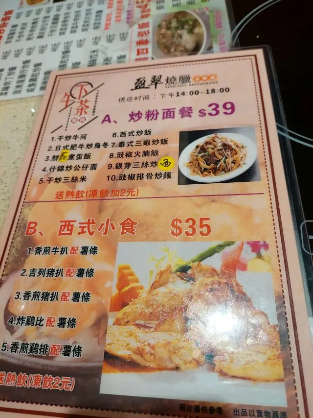 盈翠主打燒味,是日星期天,下午茶時間,不吃燒味,試試下午茶餐