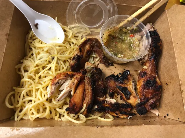 但今次我地兩個又係叫外賣,一個蒜蓉肉眼扒跟意粉,一個燒春雞跟意粉。