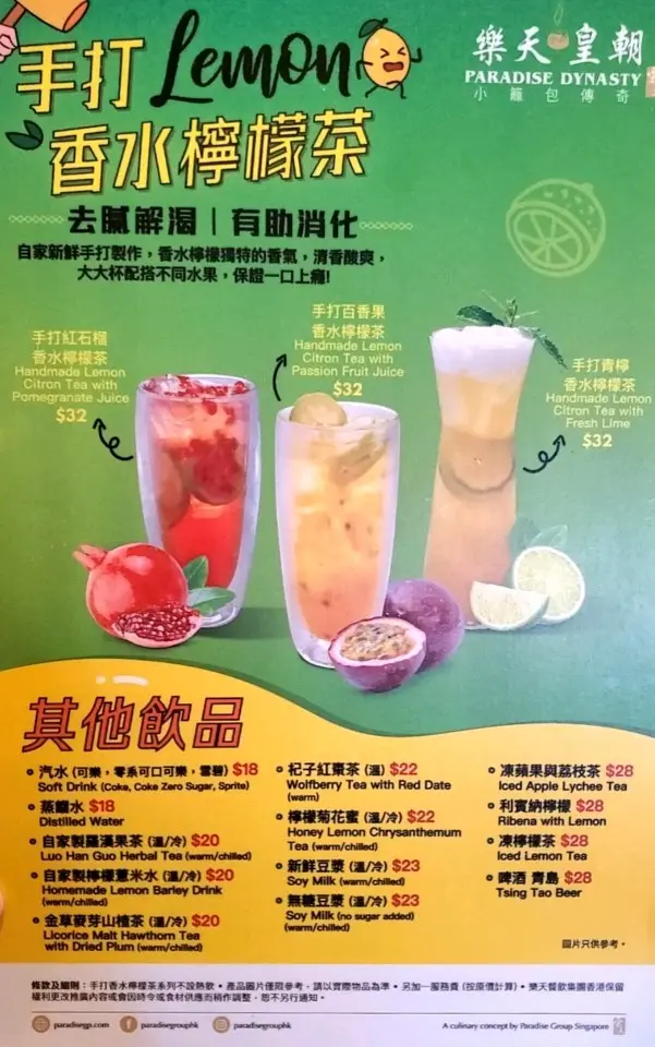 -> 呢個係我點嘅因為家人不好冷飲,自己亦未飲過近排hit爆嘅手打檸檬茶所以好奇試一試。原本想點紅石榴職員話未有貨,咪叫百香果味,叫得香水檸檬佢真係有股香水味道。口味嘅嘢見人見智,或者自己都係飲慣港式檸檬茶有澀味道,呢種手打檸茶當特色茶飲咁都不妨一試,加埋百香果汁和果籽係個清新特別嘅配搭