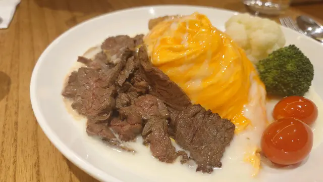 同埋一個忌廉蘑菇汁牛腰柳蛋包飯。