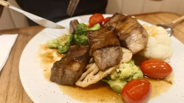 蘋果燒汁味道合理,煎牛舌煙煙靭靭,