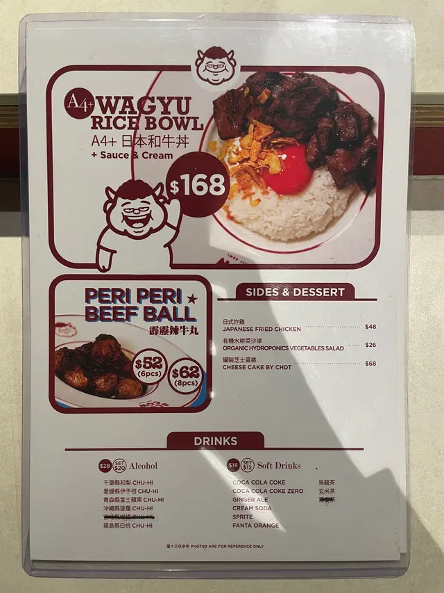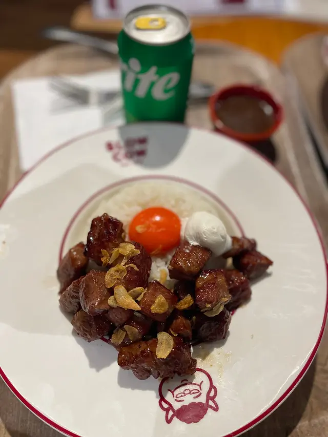 另外一個係$168 A4+日本和牛丼加 soft drinks。呢個丼配有日本蘭王生雞蛋黃以及脆香蒜片,我加$10試左個今期新推出嘅浩銘記港式香濃沙嗲醬。A4 和牛粒油脂分佈平均,肉質鮮嫩富口感,牛味濃郁。朋友叫的慢煮極上熊本豚也十分出色,能夠成就出牛油般柔軟質地及肉汁豐盈,非常下飯,配上蒜香醬油炒飯及自家製鮮忌廉與menu 推薦的砵酒黑椒昆布汁,令整個飯食有一個令人叫絕的finishing note。