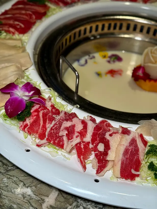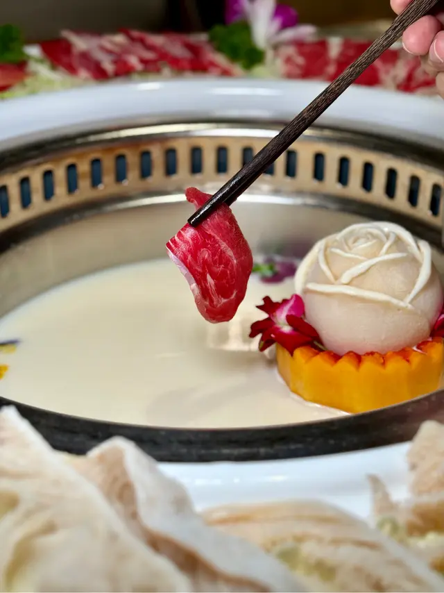特選黃牛呼拉圈啱晒打卡,日本牛乳玫瑰鍋好靚好養身🌹 Kaman_hkm等级42025-12-08 关注 坐低無耐睇中咗個「日本牛乳玫瑰鍋」呢個湯底,一上枱勁打卡📸,成個湯底係乳白色,面頭用咗牛乳玫瑰花冰,浸喺牛乳汁入面,睇見都覺得治癒。滾起之後飲咗啖湯,奶香溫柔,帶微微甜。跟住主角登場:「海陸雙饌」海鮮拼盤有蝦、鮑魚、蜆、魚,樣樣睇得出好新鮮,特別係啲蝦,淥熟之後爽口彈牙,魚肉好厚身,肉質嫩滑。另一邊嘅「特選黃牛呼拉圈」就玩內臟,牛脷薄切快熟軟淋、牛柏葉爽脆、牛小腿同牛心椗彈牙有嚼頭、牛白肉油脂甘香,每款淥十零秒就食得,牛味濃得嚟唔羶。我鍾意將牛脷點少少豉油,再加蔥花同炸蒜,入口牛味濃郁好香口。以上食记乃用户个人意见 , 并不代表OpenRice之观点。赞好分享特選黃牛呼拉圈啱晒打卡,日本牛乳玫瑰鍋好靚好養身🌹 香江花月 (百誠大廈) https://s.openrice.com/QrLT0fuDV00检举 张贴 评分4味道4环境4服务4卫生4抵食用餐日期2025-12-05用餐途径堂食用餐时段晚餐