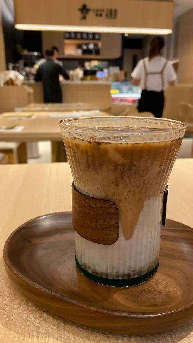 呢杯咖啡真心覺得ok既,對比起極度失望既全日早餐。伯爵茶味同朱古力味都飲到,又出奇地夾到!唯獨咖啡味唔算濃,同價錢相對貴~ 精品咖啡舖以同樣價位可以買到杯更大杯的。