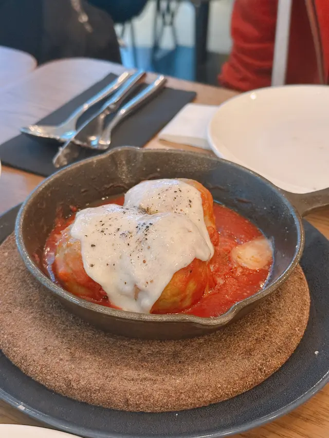 Roman Meatballs🧆跟餐$48💰羅馬肉丸超大粒😍肉質鬆軟😬表面加上巴馬臣芝士🧀加上濃郁番茄醬🥫好味道😛