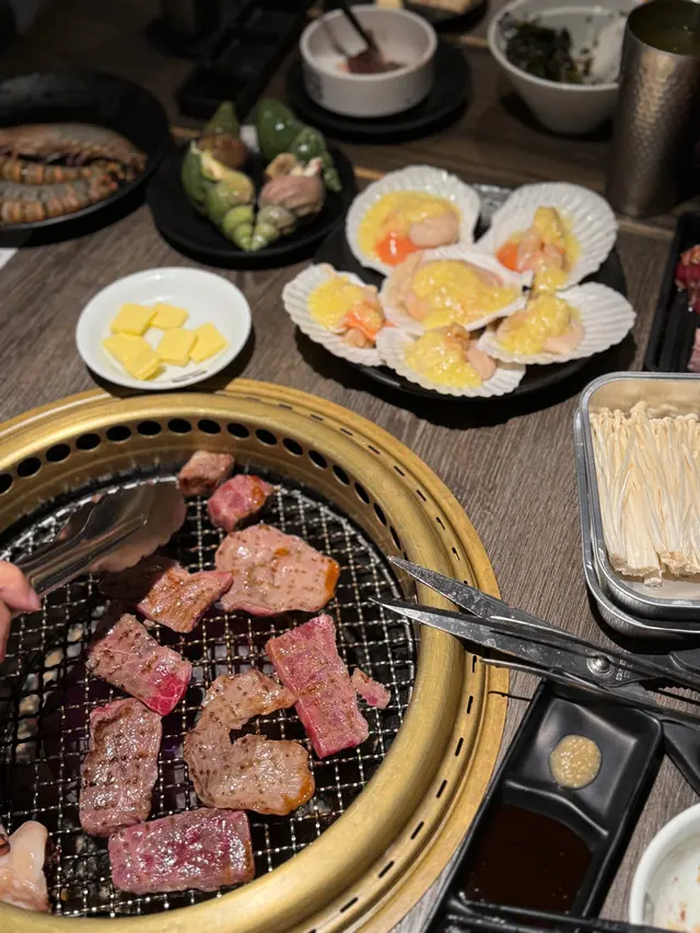 除咗肉類,仲有新鮮嘅海鮮選擇同多樣嘅配菜,如沙拉同小菜,增加咗餐點嘅多樣性。