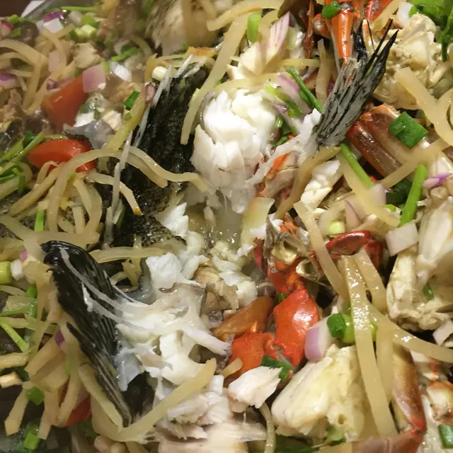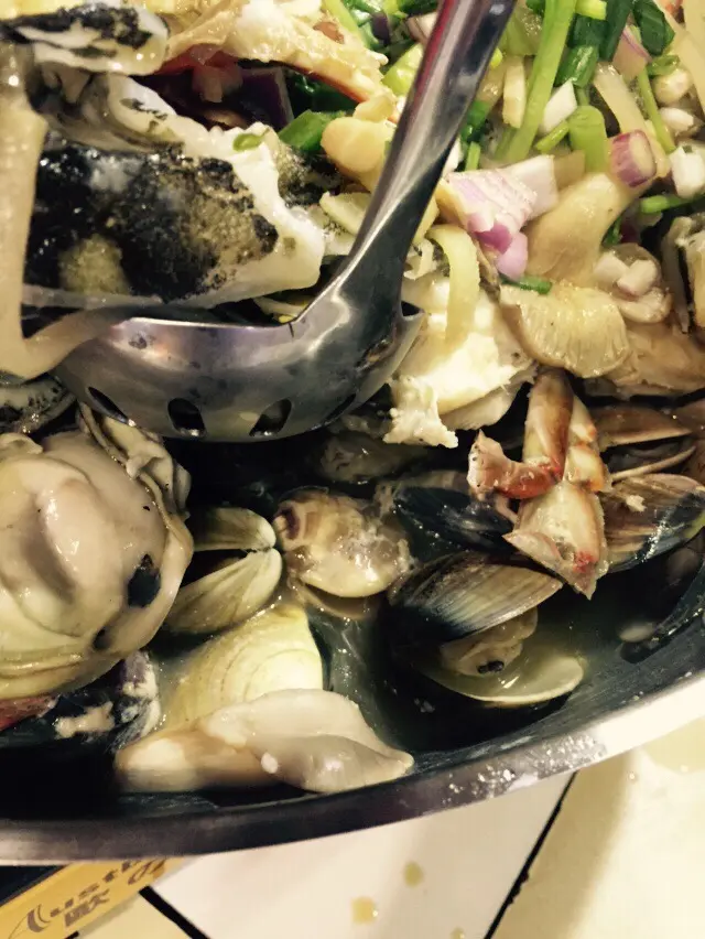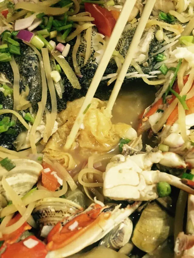 一路食一路尋寶嘅感覺非常開心。其實有少少似食盆菜,只不過盆菜係以肉類最多,呢個全部都係新鮮嘅海鮮。雪白嘅沙巴龍躉肉非常幼嫩,肉質如絲般順喉。好正!
