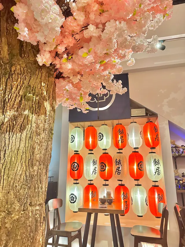 第一次嚟太子呢間居酒屋叫「餓居」!一入門口已經有日本嘅祈福木牌牆,鳥居,蠟筆小新公仔⛩️🤍 就算要等位都可以坐喺鳥居前面影吓相📸 入面最靚嘅位係餐廳竟然放咗一棵櫻花樹🌸 旁邊座位都可以同櫻花影到相!