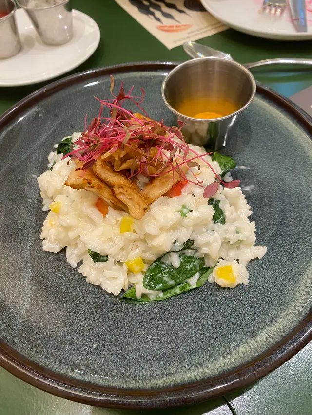 西班牙植物素雞菠菜苗配黃薑粉意大利飯🍚