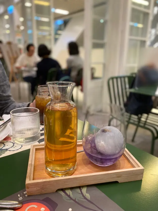 好得意😂第一次見尼款飲料,自行將伯爵茶倒入去紫色蝶豆花茶內面,入面仲有一個冰波🤣